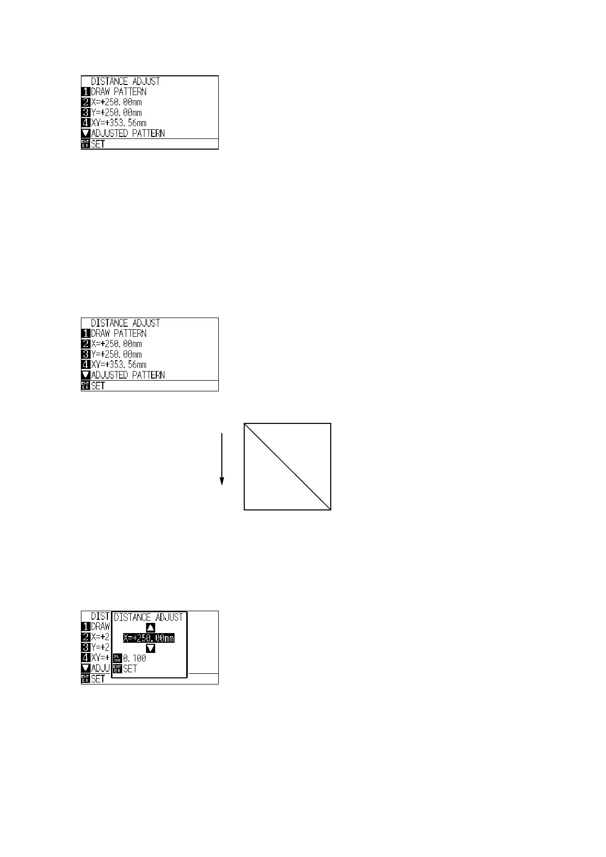 (10) Press the F1 key (DRAW PATTERN) to start to draw the adjustment pattern. The plotter immediately