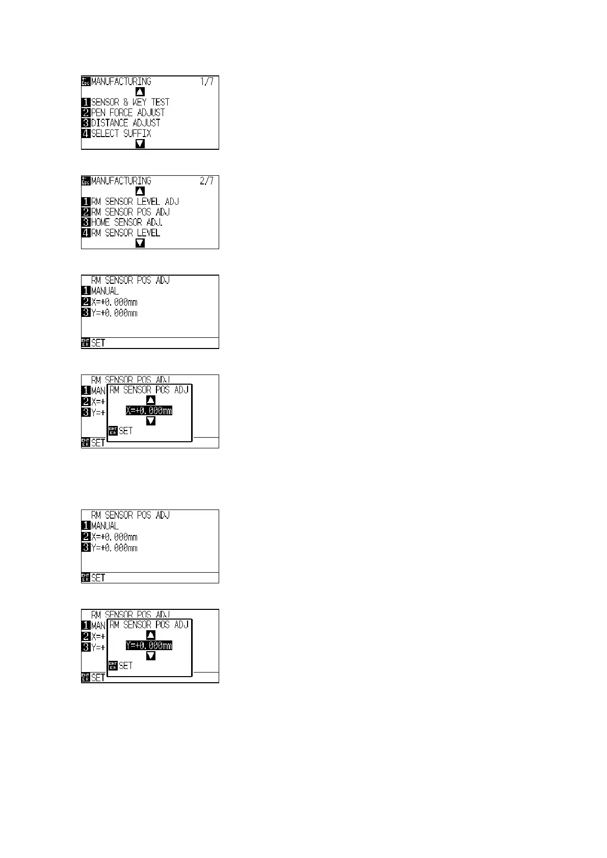 (4) Press the Right position key to display the adjustment menu shown below.