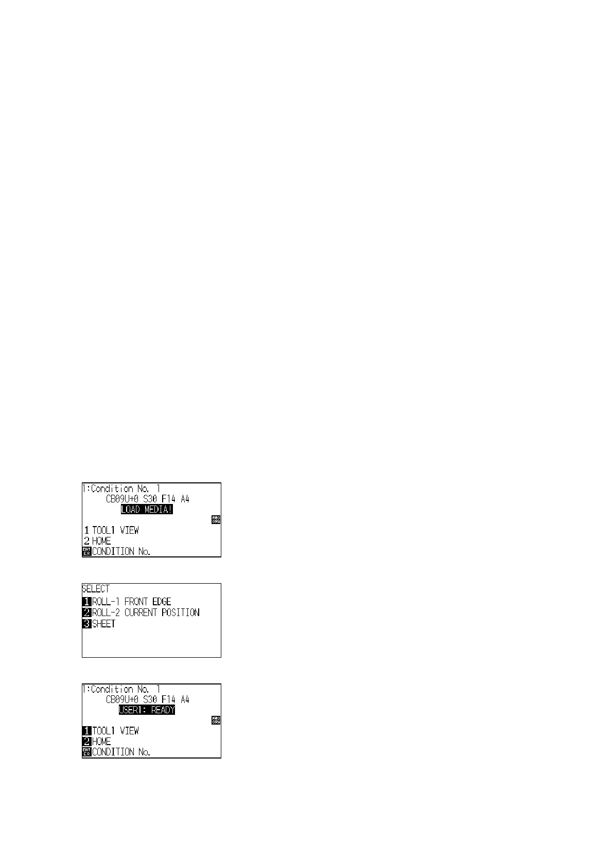 (3) Load the sheet media to the plotter, and then the plotter displays the following menu.
