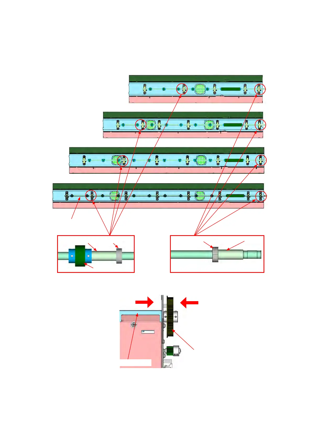 (2) When the drive roller shaft assembly is installing, conrm the position of bush as shown in the picture