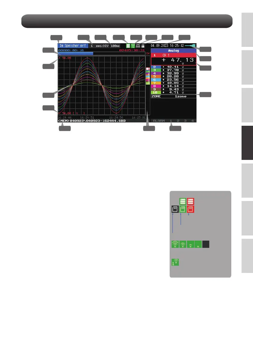: Zeigt den Fernstatus an. (Orange = Fernstatus, weiß = lokaler