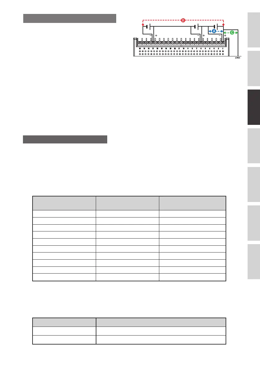 < Entre les bornes +/- (A) >
