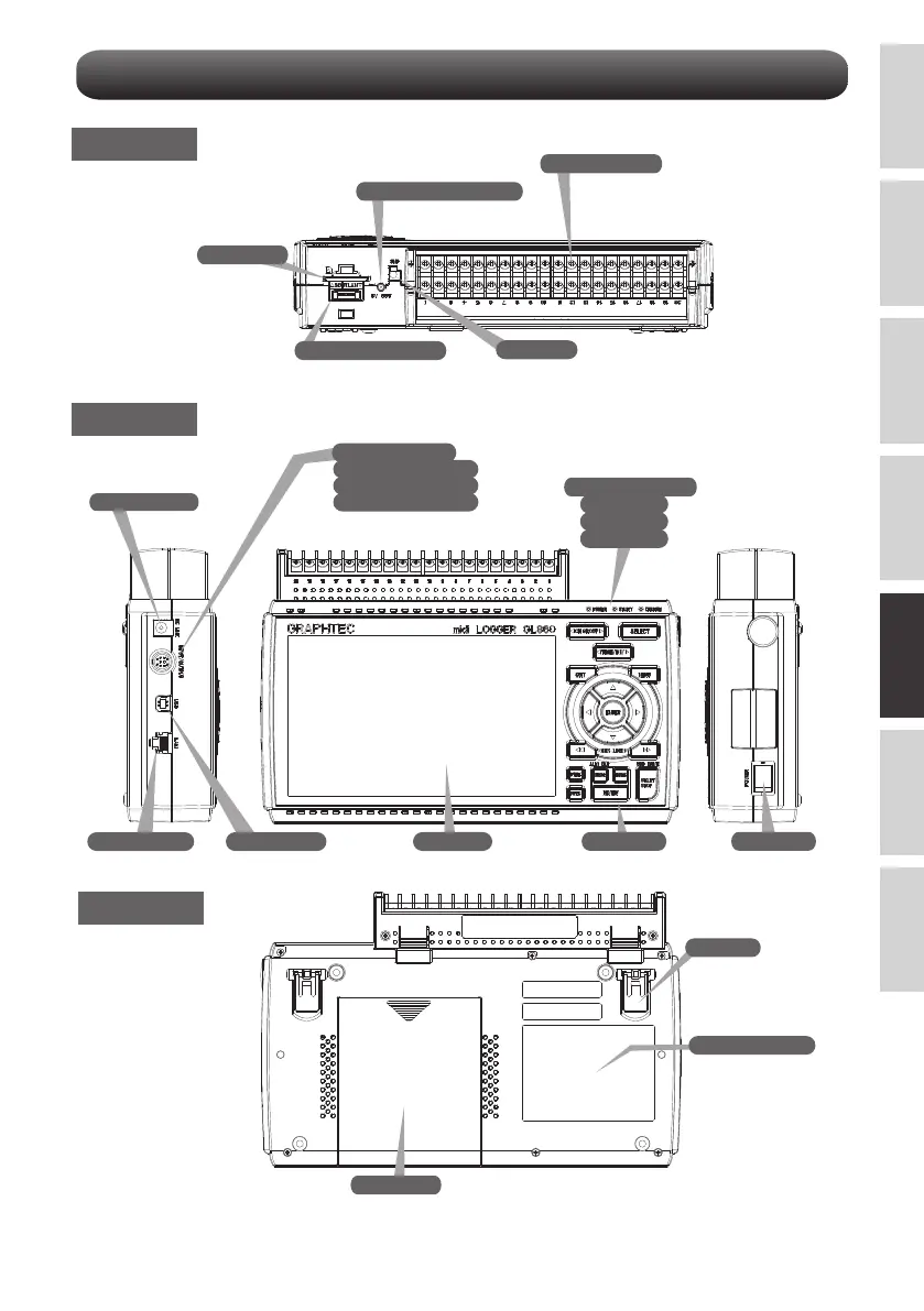 GRAPHTEC midi LOGGER GL860 - 各部分的名称