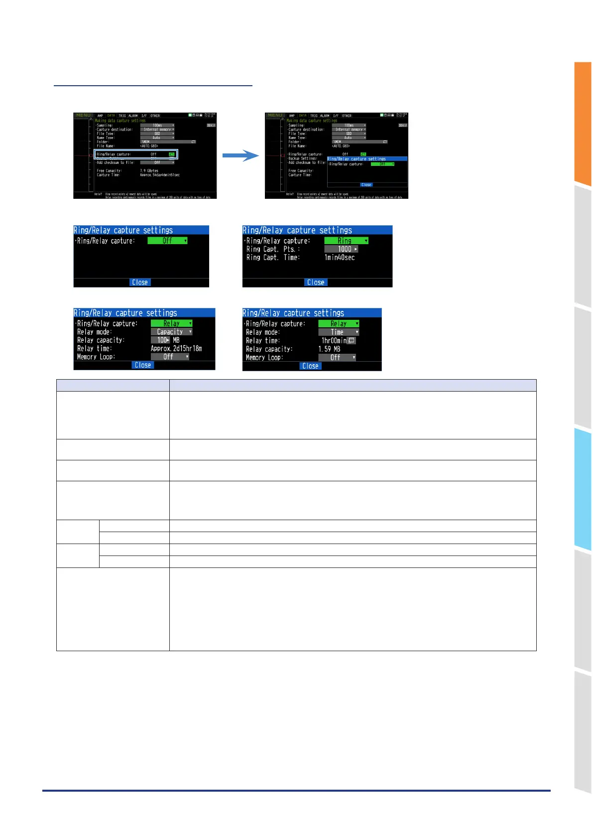 Ring Capt. Pts. When using the ring capturing function, specify the number of data points for one file.