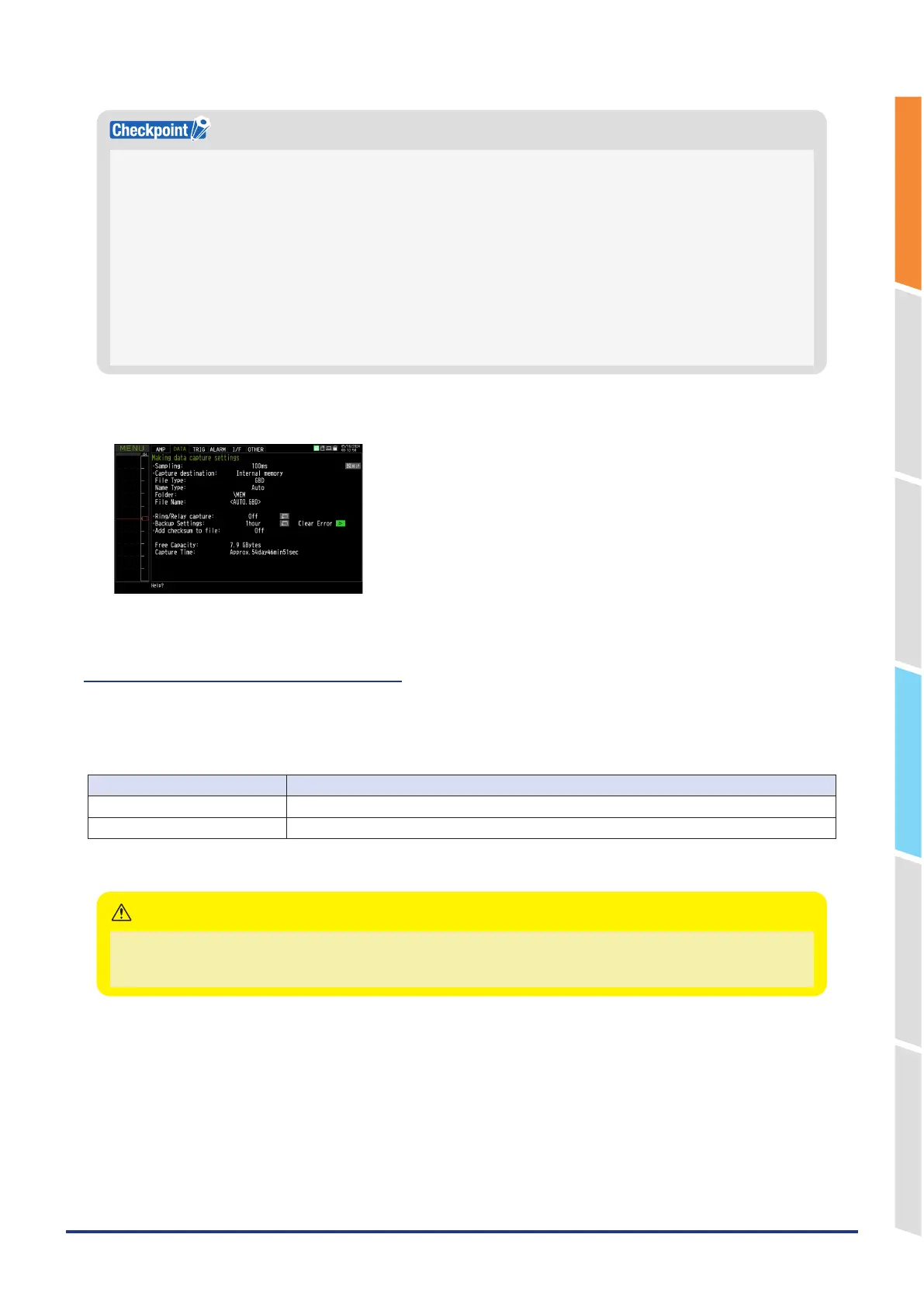 For the data corruption check function, refer to "11. Data replaying menu" in "3.4 Setting Menus".