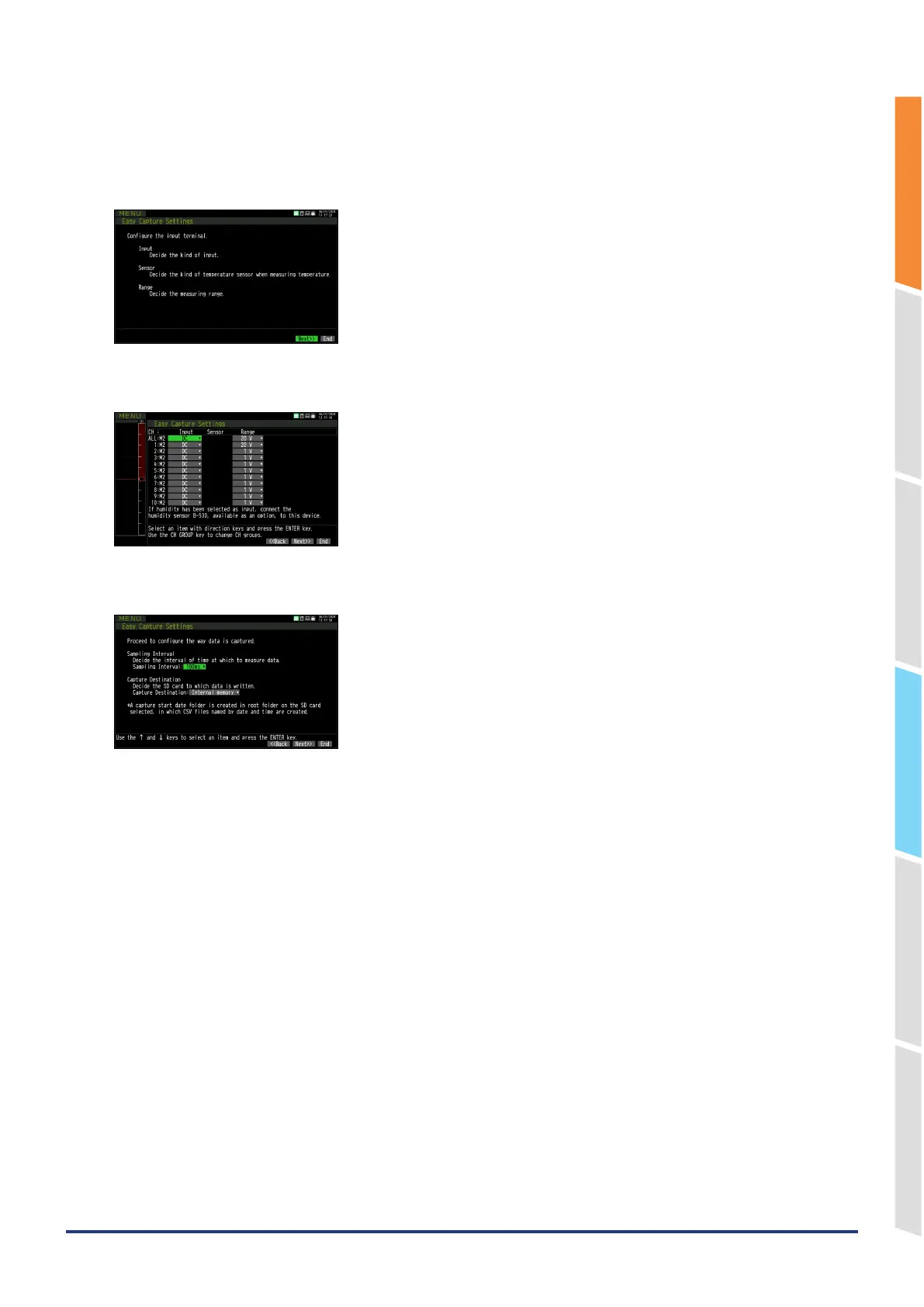 3. After setting, when the “Next>>” is selected and then the [ENTER] key is pressed, the “Sampling,Interval, Capture