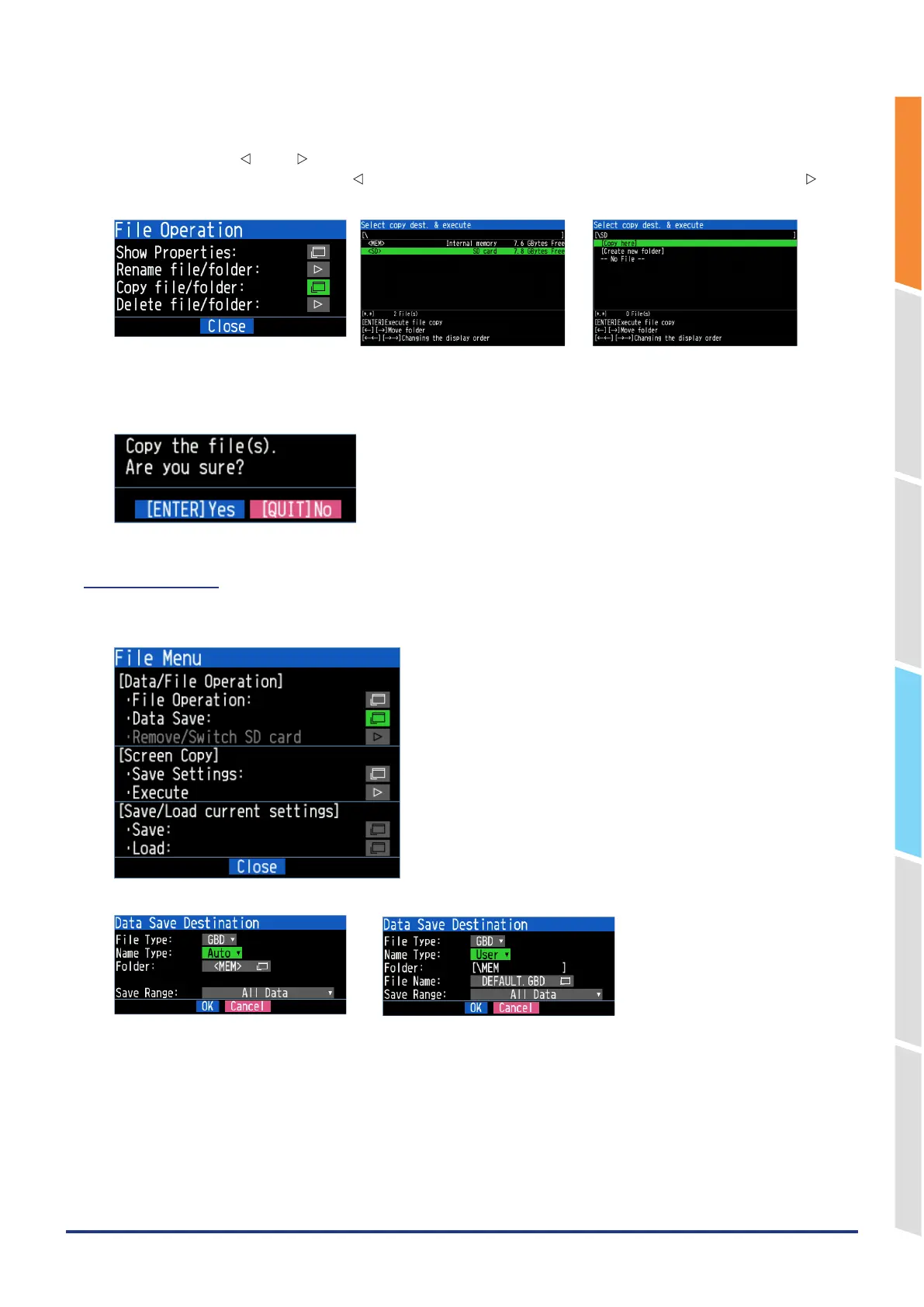 displayed. Press the " " and " " keys to specify the copy destination folder. In this example, to set the copy