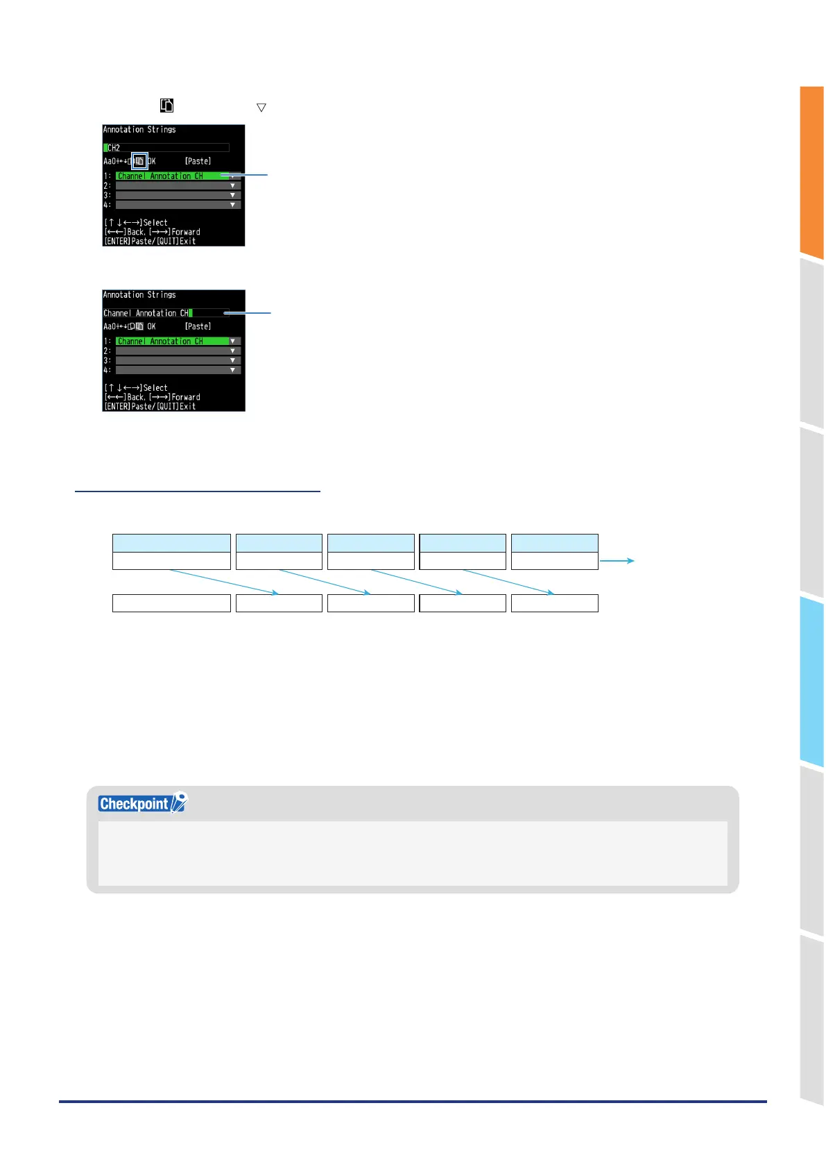 5. Select the " " and use the " " key to select the character string you want to paste from the clipboard.