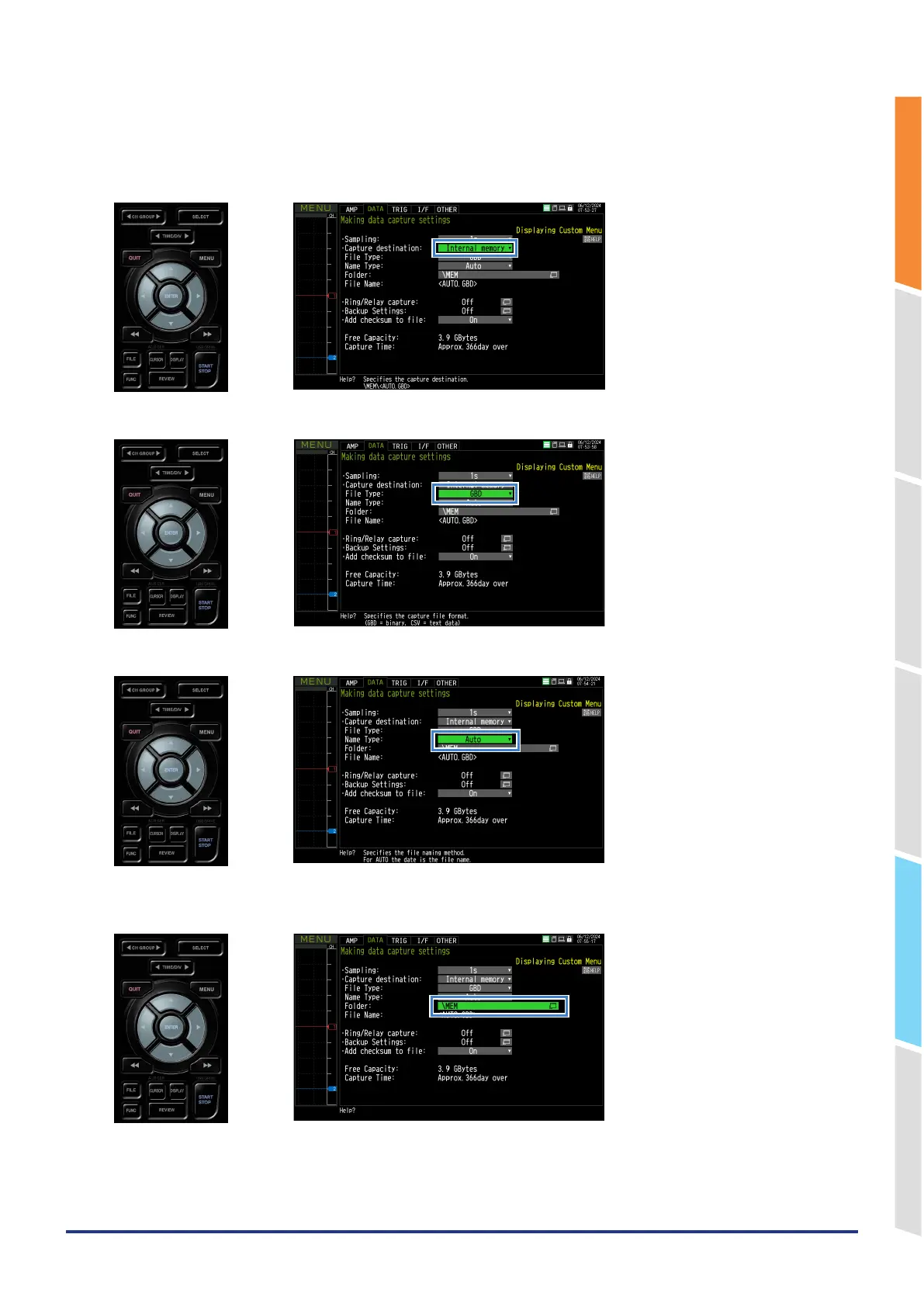 Set the data capturing destination media, file format, and file naming method.
