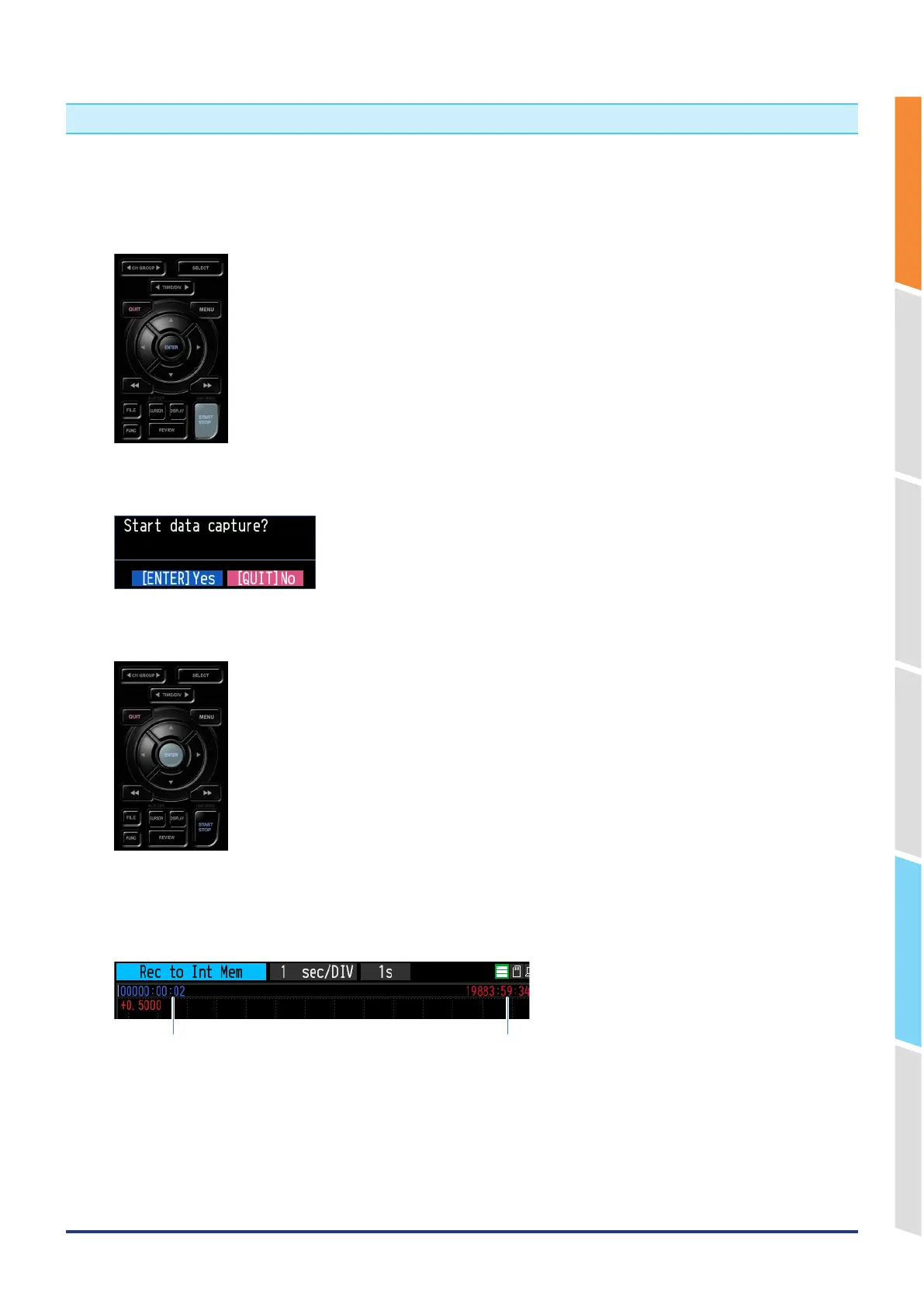 When capturing starts, the elapsed time and available capturing time are displayed.