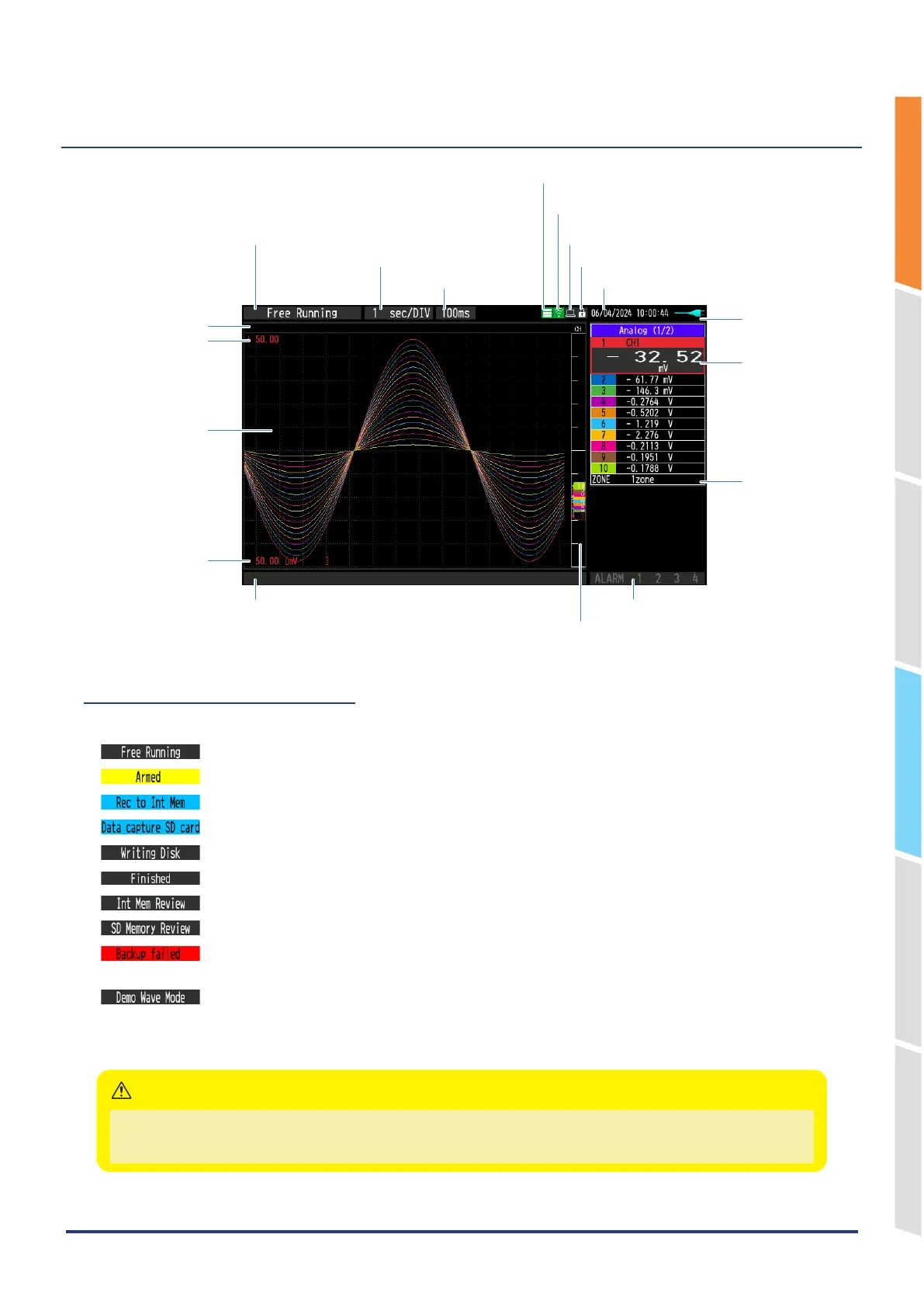 Make sure the status message is “free running” before performing the next operation.