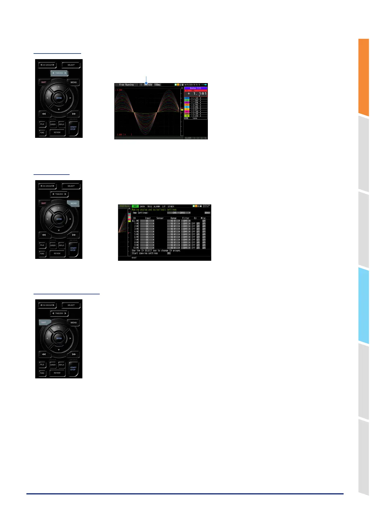 Press the left/right key of the [TIME/DIV] key to change the time axis display width.