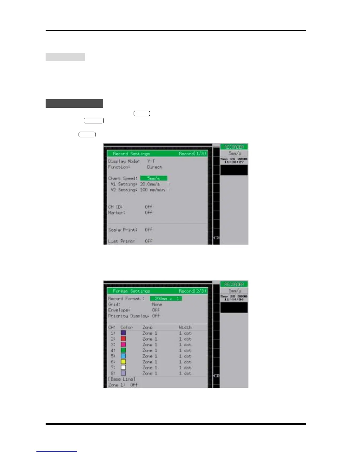 Settings windows. At each window, use the arrow keys to move the cursor to the desired parameter, then