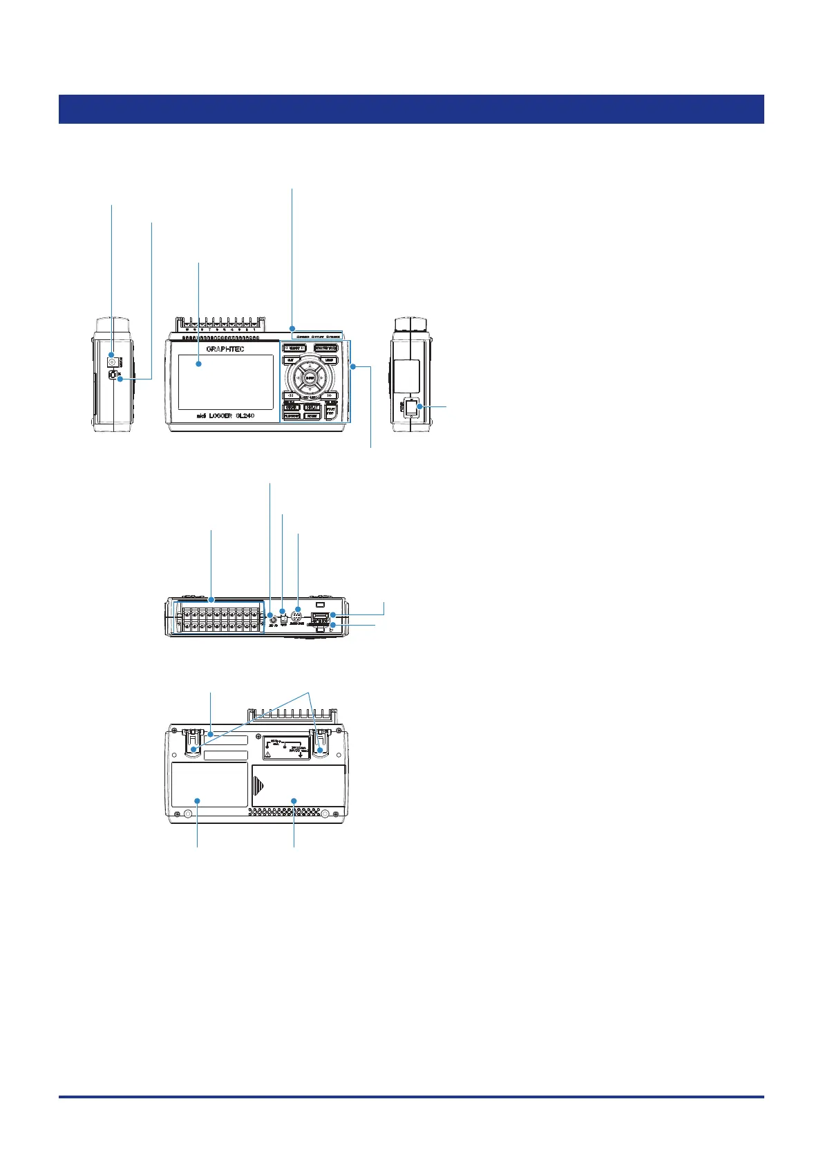 This section describes the names and function of parts of the GL240.