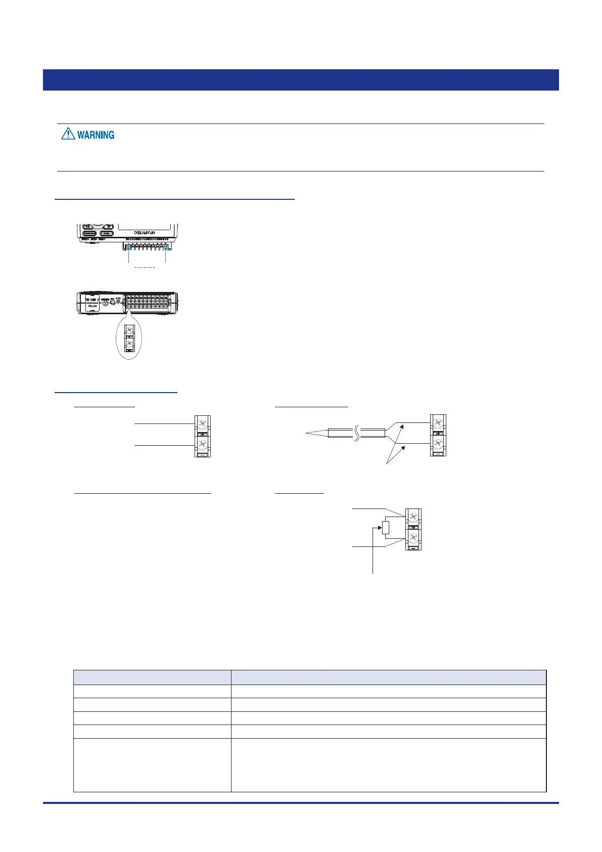 During wiring, confirm that the signal's supply source is turned OFF to prevent electrical shocks.