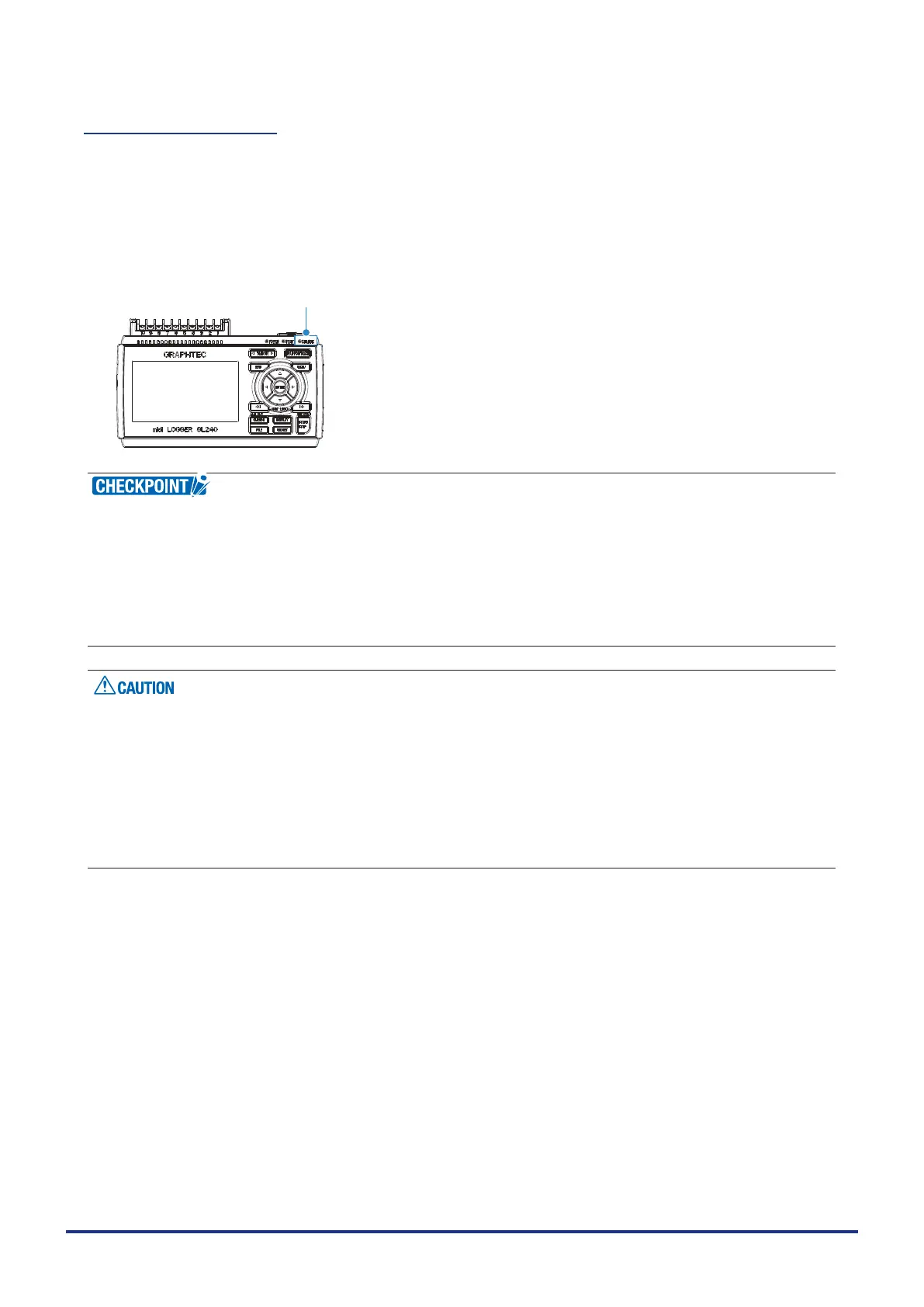 The battery pack is charged by mounting it in the GL240, attaching AC adapter to the GL240.