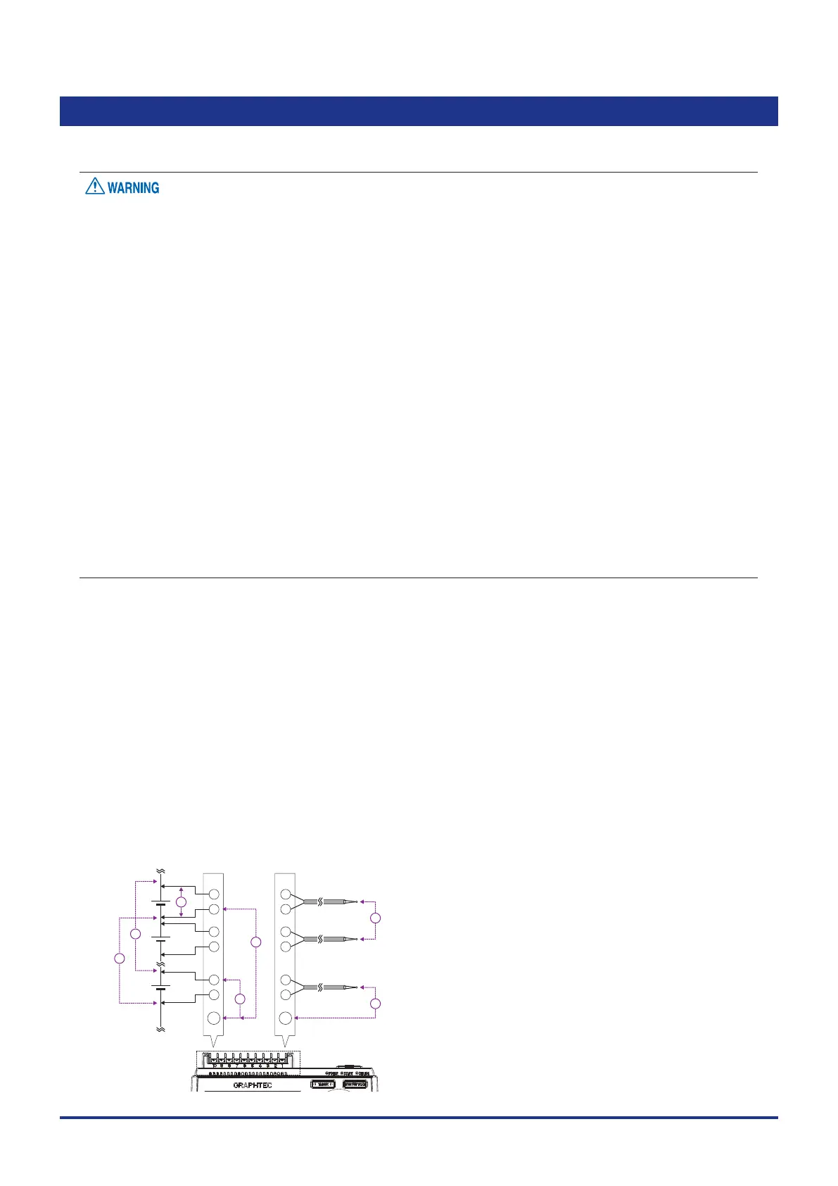 · Please take care of the static electricity when the connecting the input cables or the thermocouples.