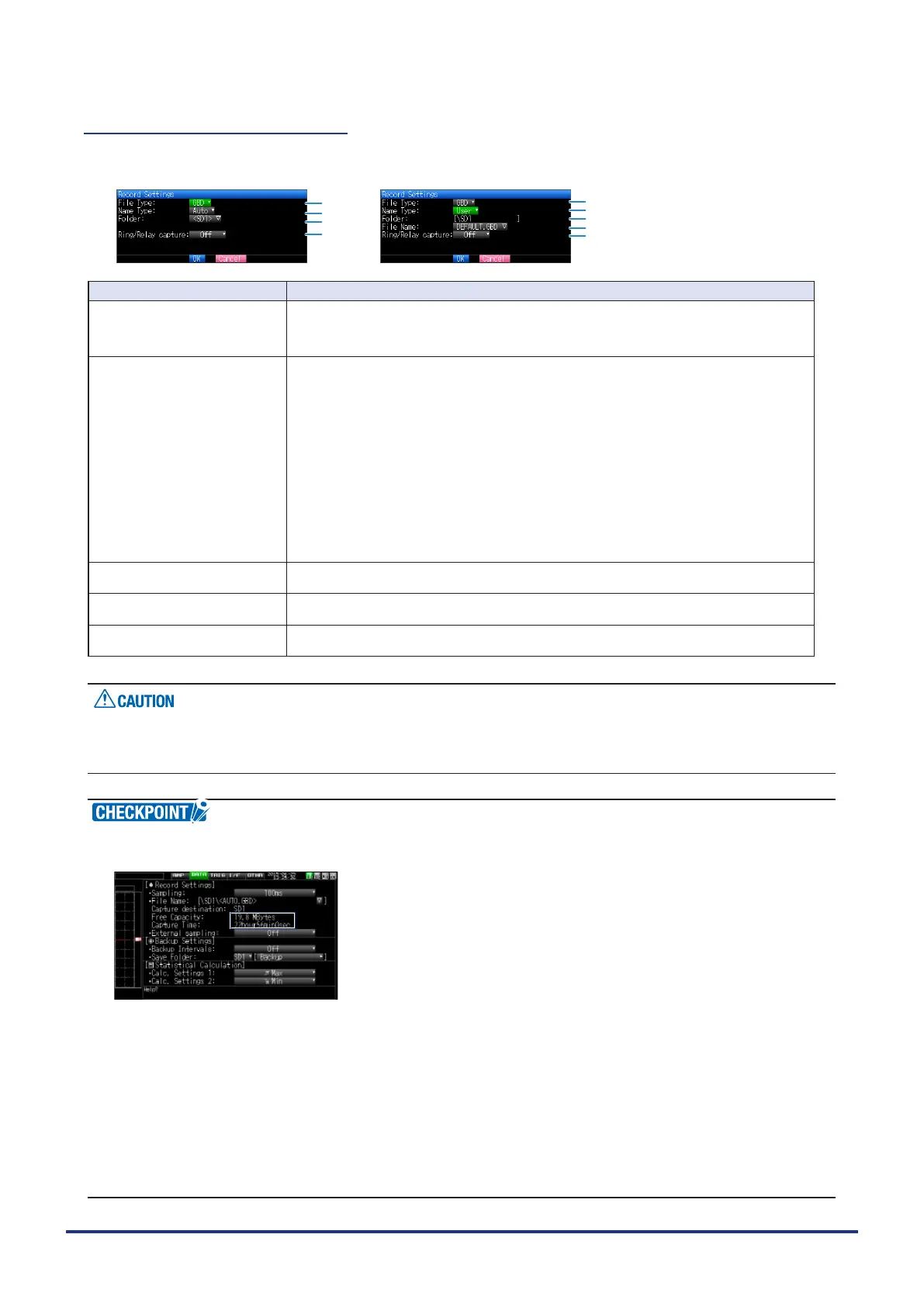 Capture Space : Displays the amount of memory space available for data capture.