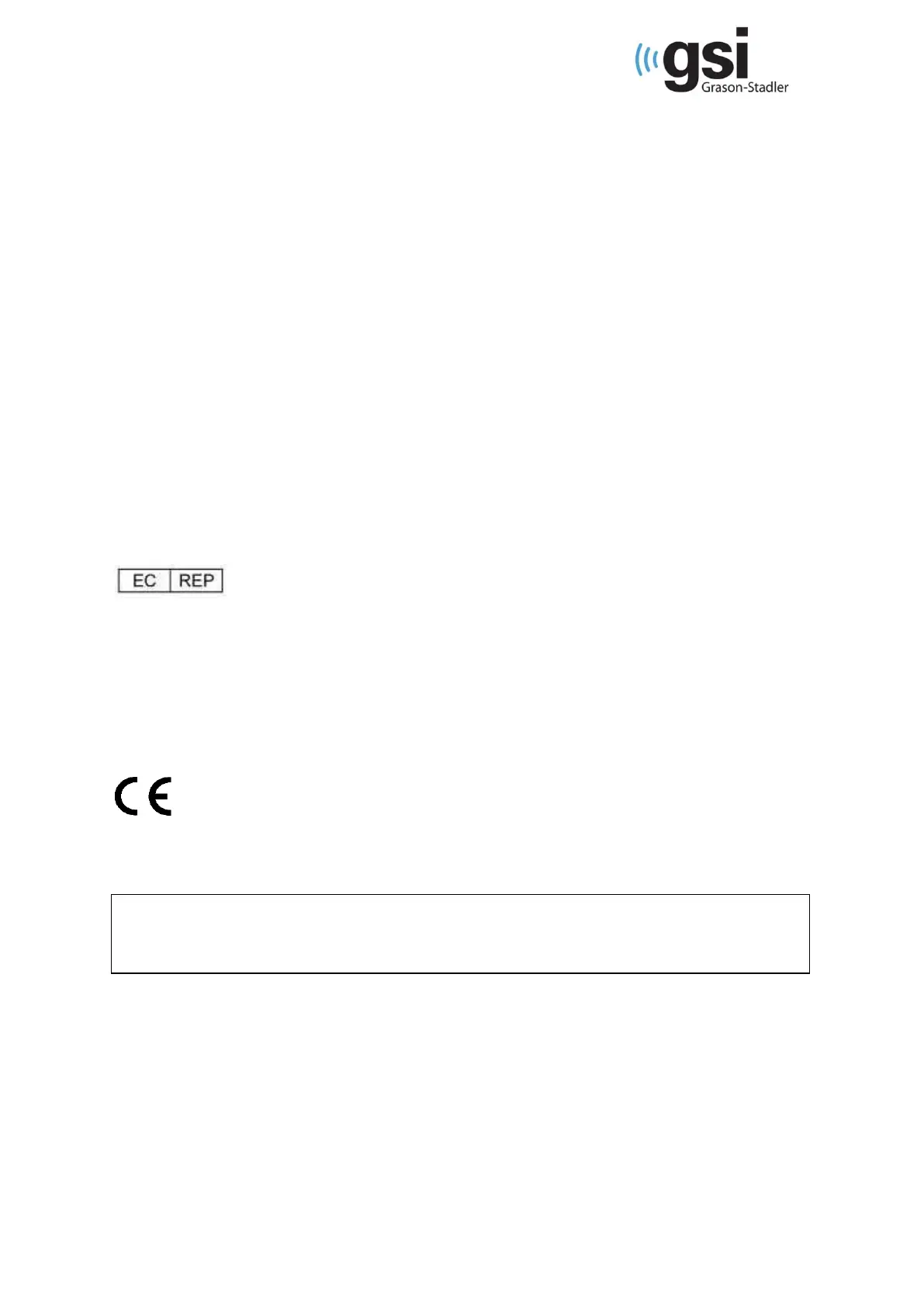 mark identifies compliance with the Medical Device Directive 93/42/EEC. Grason-