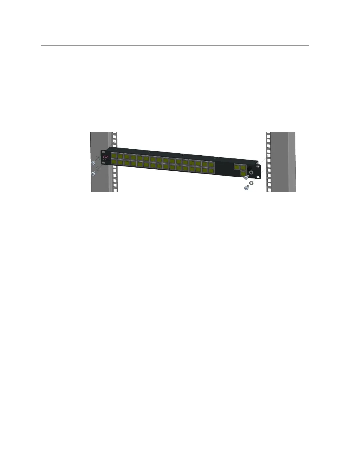 and fixings in the 4x mounting holes, to secure the Aux panel to the rack as shown below.