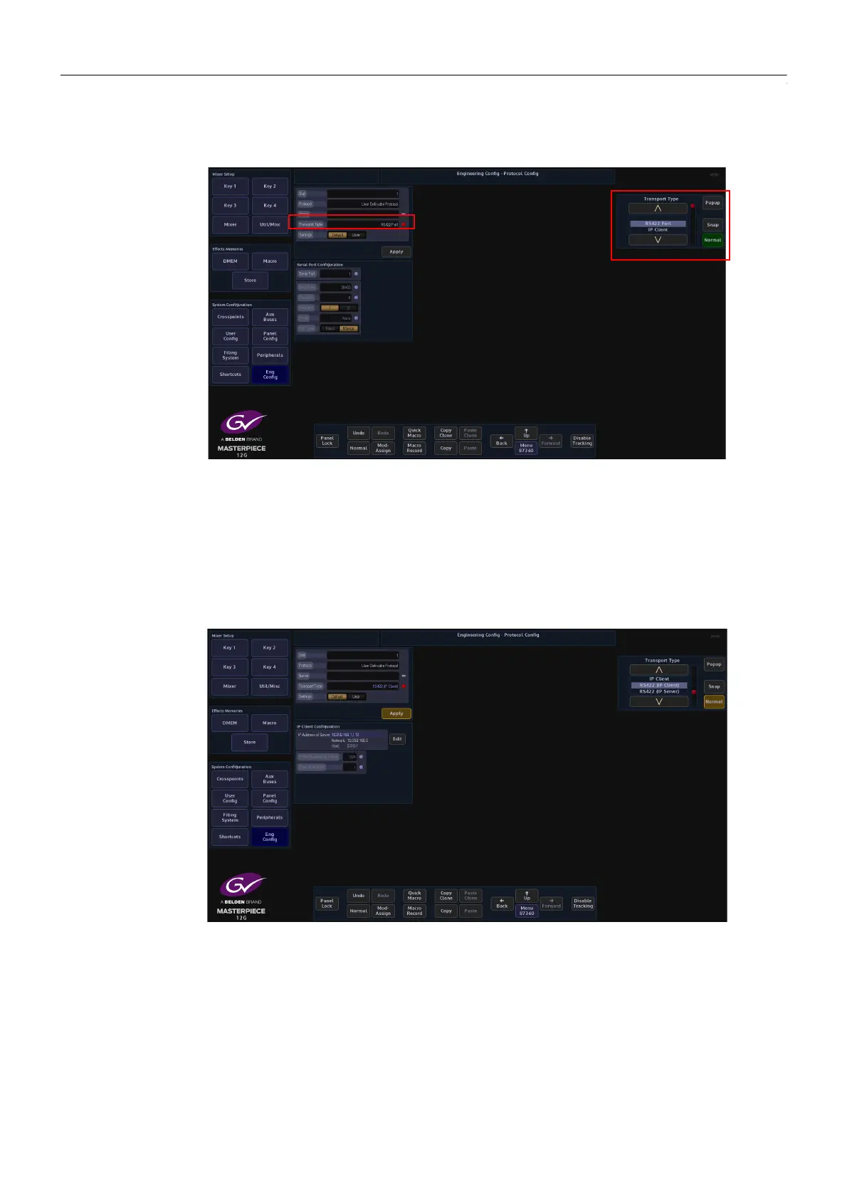 external device (normally this would default to “RS422 Port”). If a specific setup is needed, press
