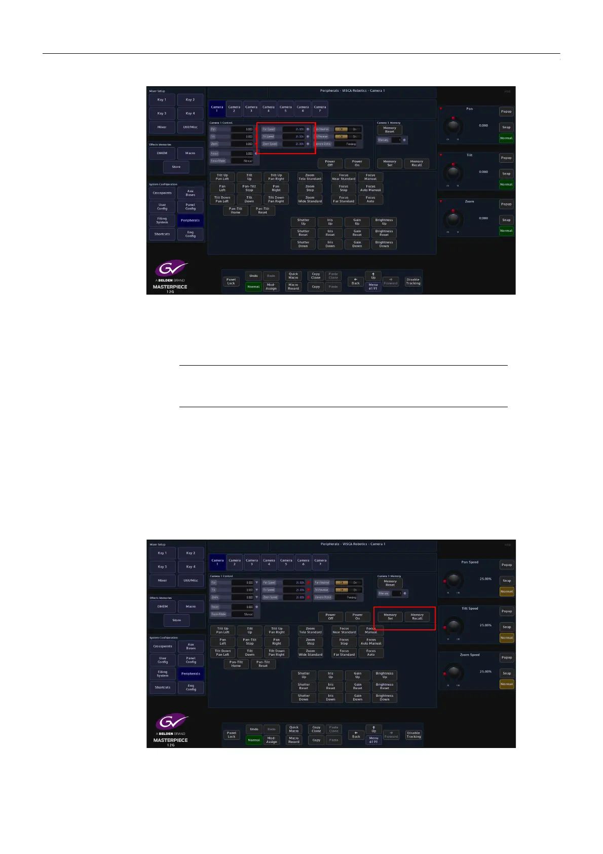 Pan Speed and Tilt Speed parameters are only available when controlling the camera with pre-