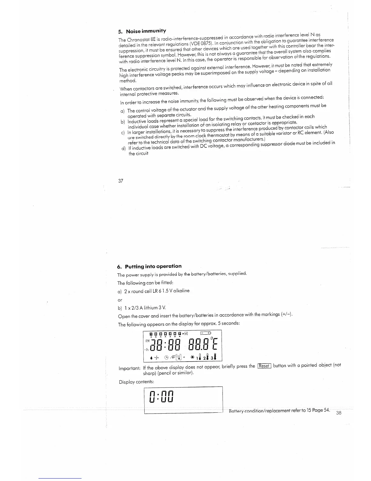 Grasslin CHRONOSTAT 8E - Noise Immunity; Putting into Operation