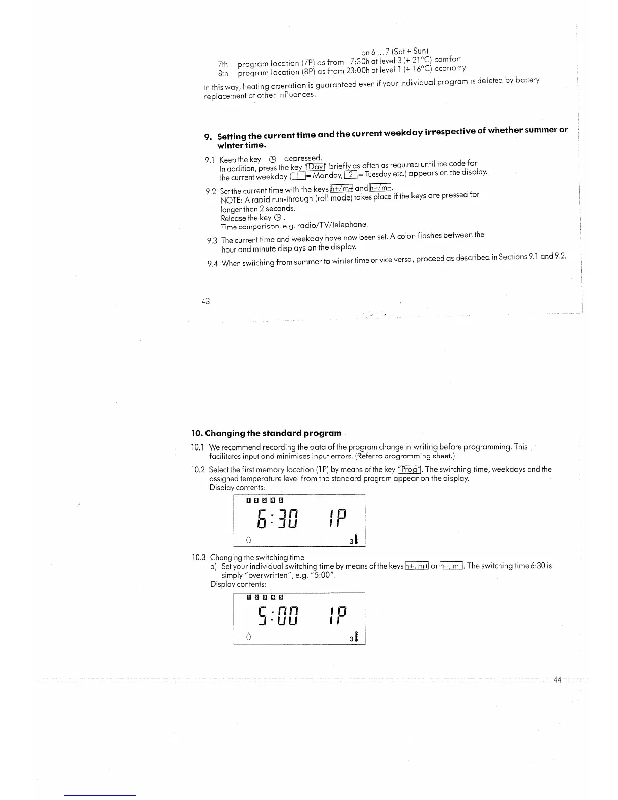 Grasslin CHRONOSTAT 8E - Setting the Current Time and the Current Weekday Irrespective of Whether Summer or Winter Time; Changing the Standart Program