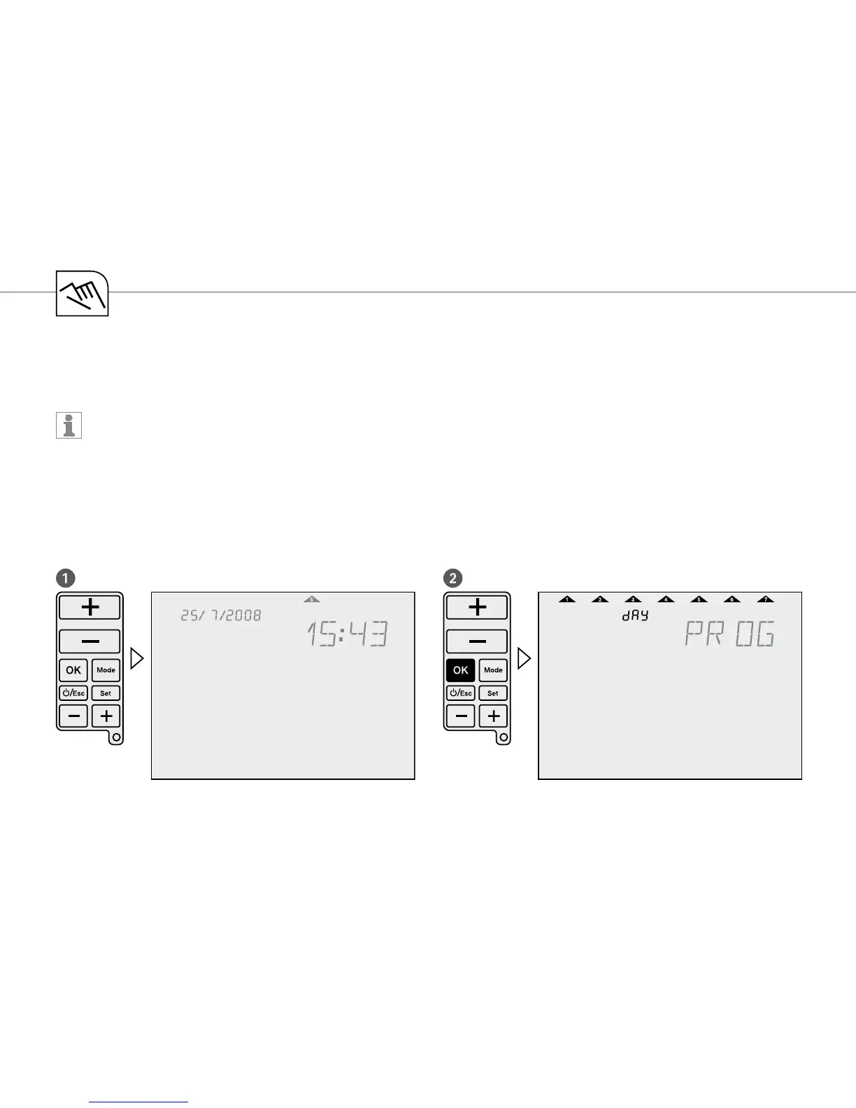 To specify programs after initial start-up press the SET-button, then choose the Prog menu with the