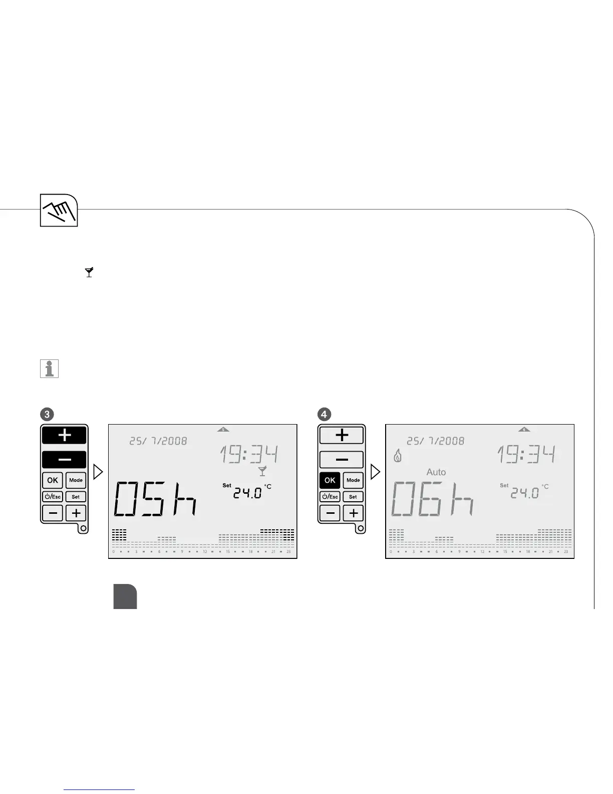 period of time is 1 – 23 hours. After the time is elapsed, the device returns into the mode before