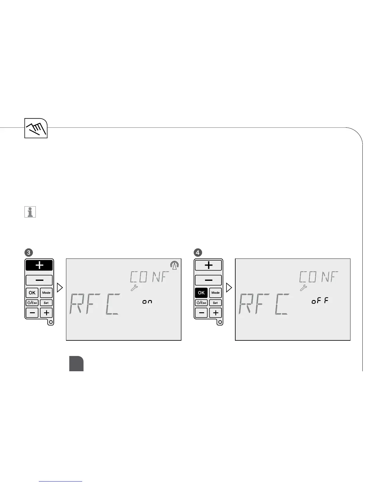 Press upper + button (–buttondisablestheRFsignal)toenableancontinousRFsignal.Thereceiver