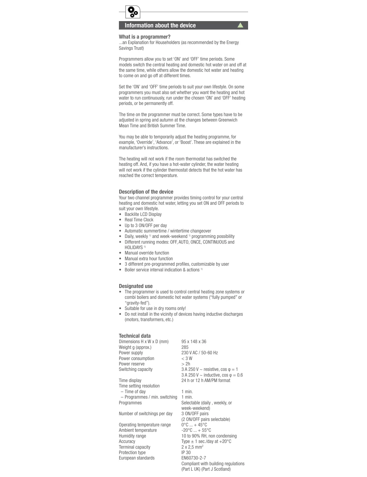 – Programmes / min. switching