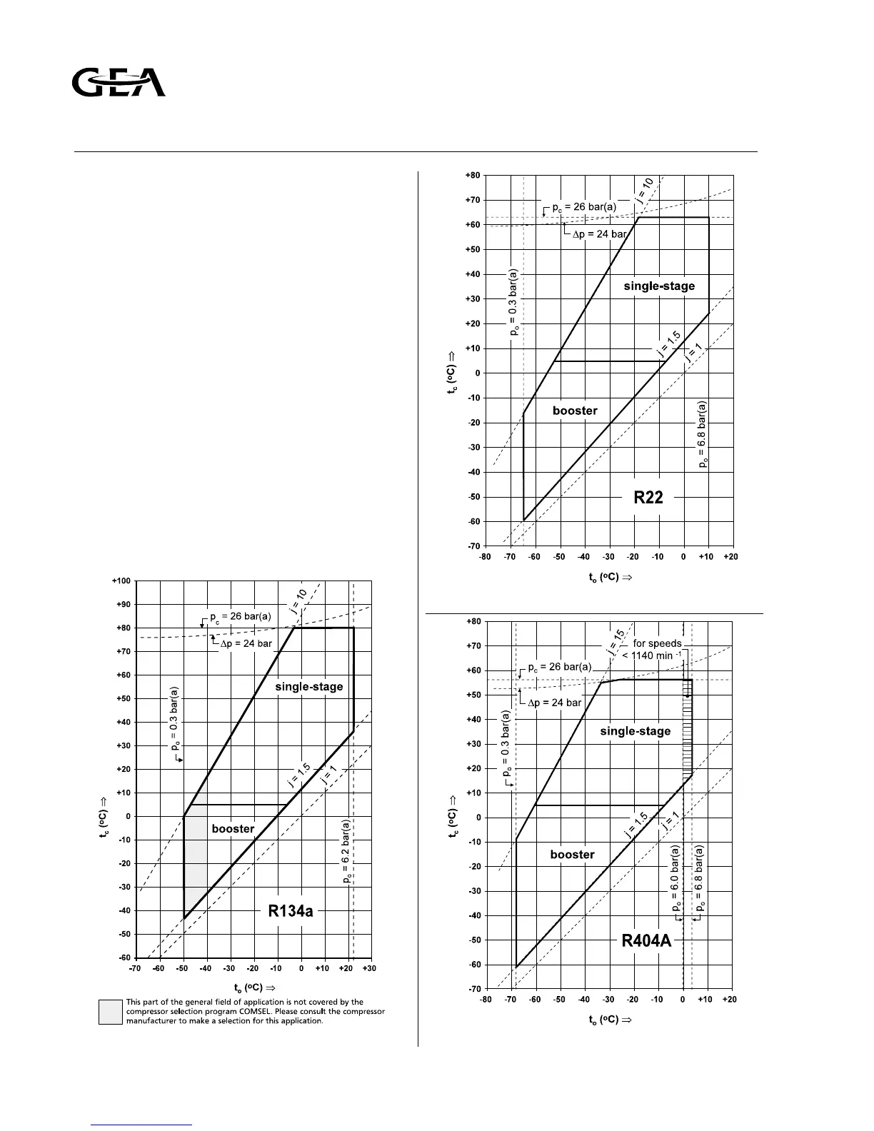 Fig. 5.3 Field of application for RC6 with refrigerant R404AFig. 5.1 Field of application for RC6 with refrigerant R134a