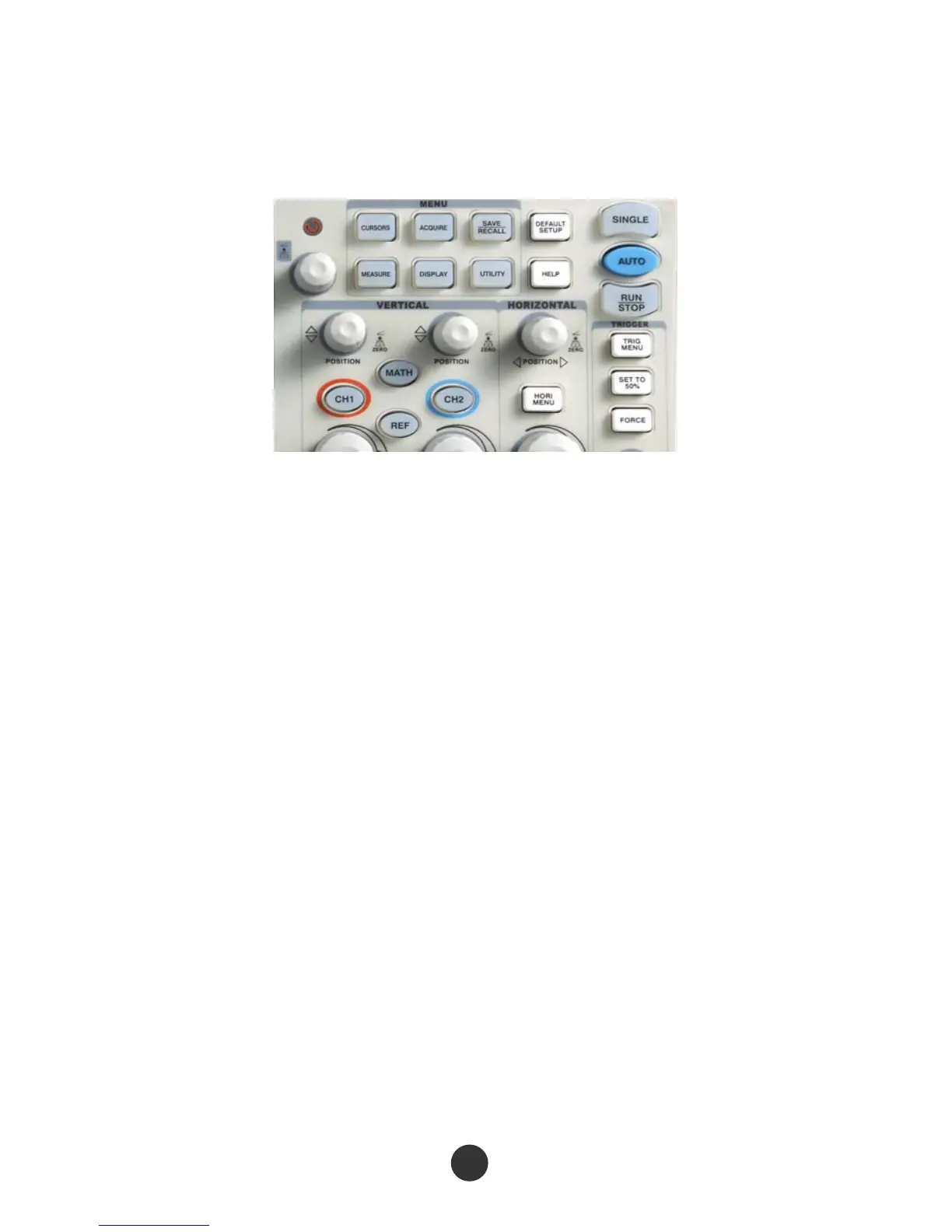 [SET TO 50%]: set the trigger electric level as midpoint of the signal amplitude.