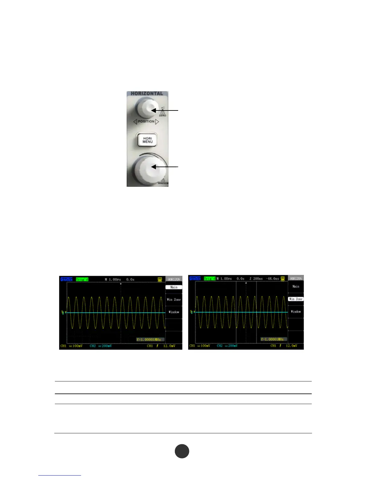[POSITION] and the knob [s/div] to regulate the window