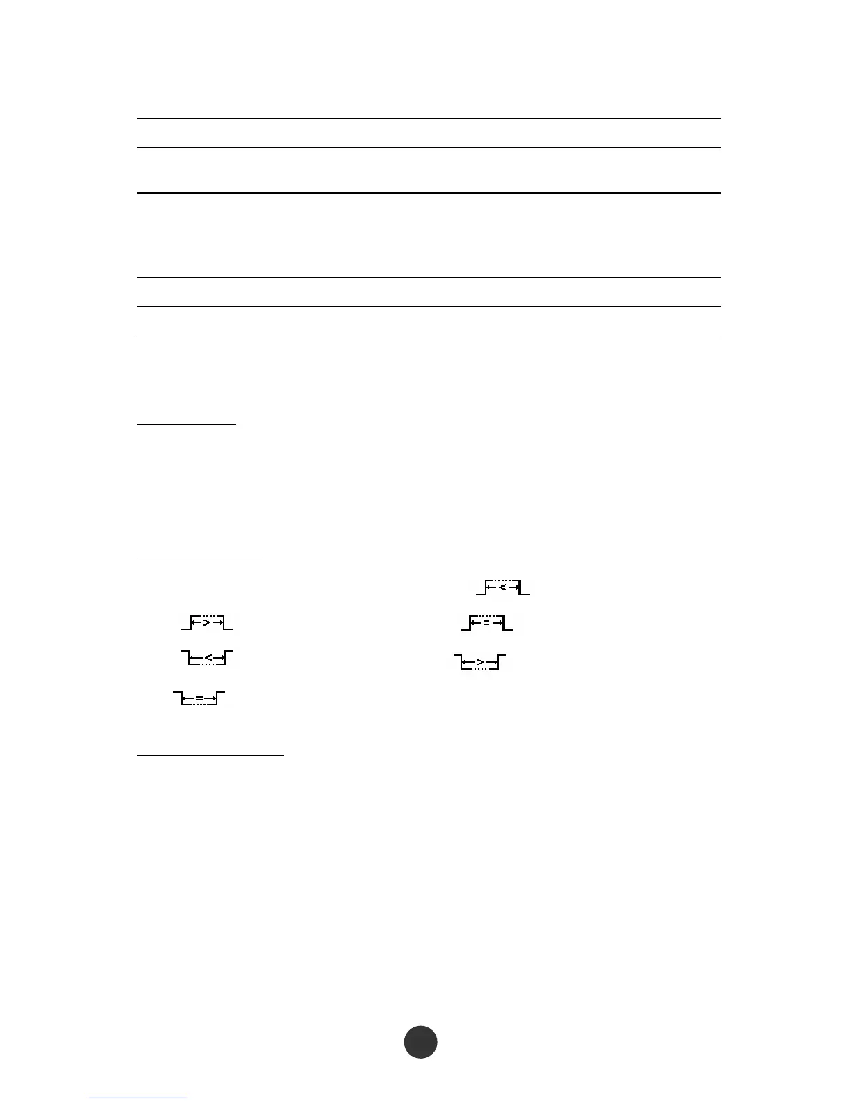 “ ” (positive pulse width >), “ ” (positive pulse width =),