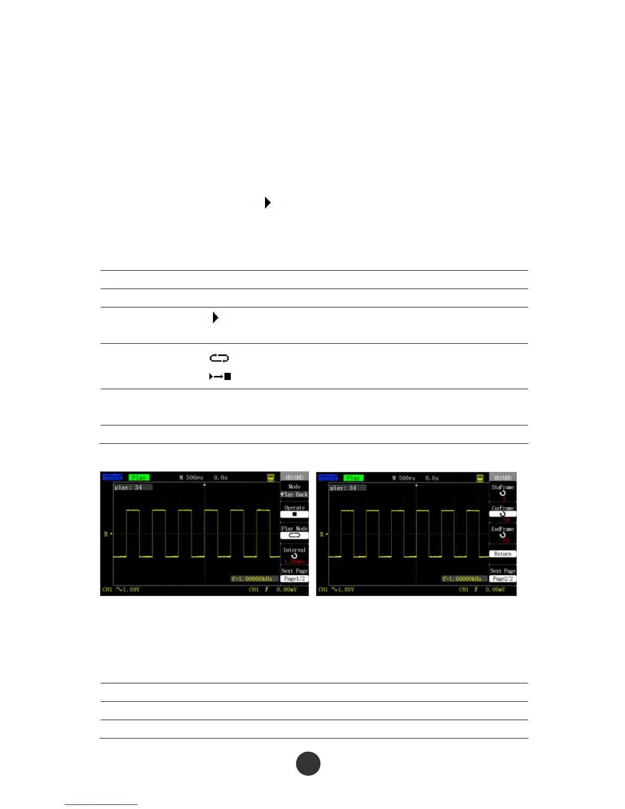Table 2-52 Page 1 of the waveform replay function menu: