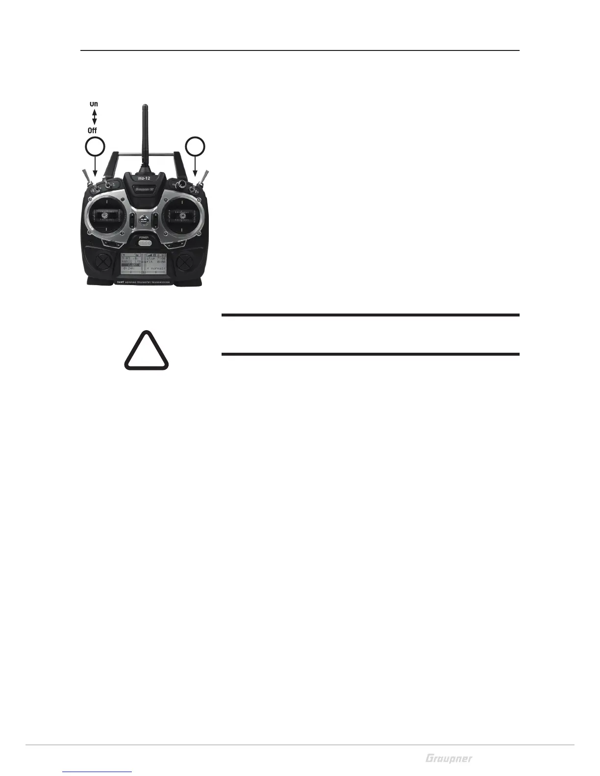 tralize the throttle stick, please read the transmitter manual. To