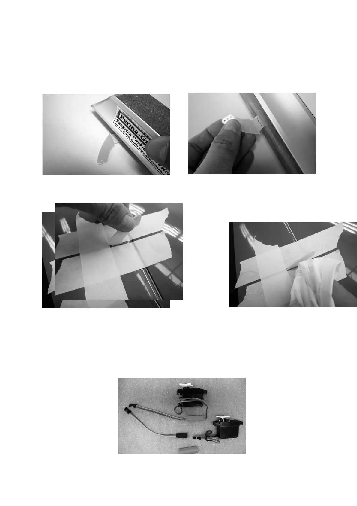 fast-setting glue. Using the RC system, bring the servos in the middle position and