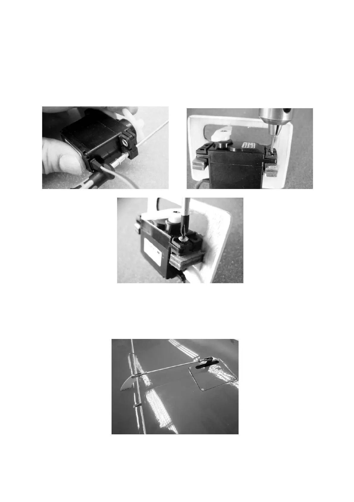 into the servo flange. For drilling Ø 1.5 mm holes for the screws, the hollow rivets can
