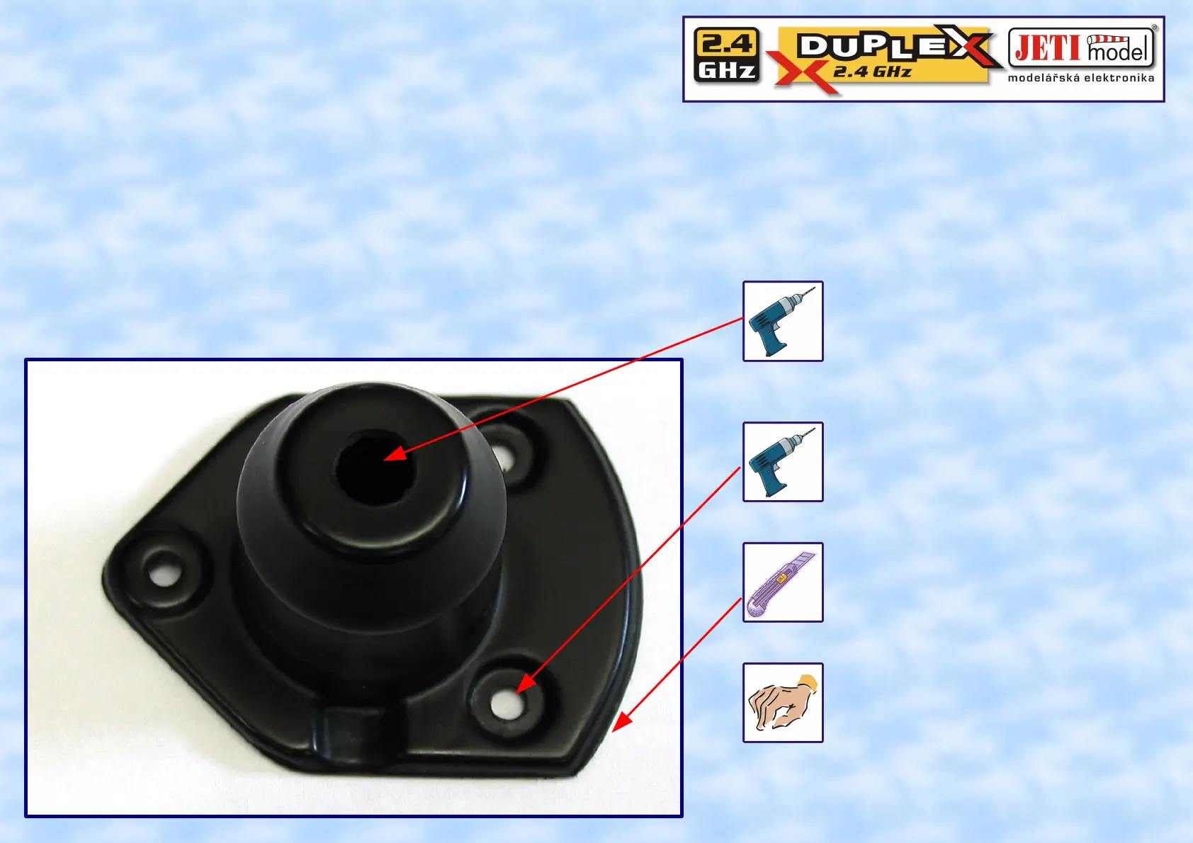 2.4GHz antenna will be held by plastic part from G19 assembly kit. It is necessary to drill