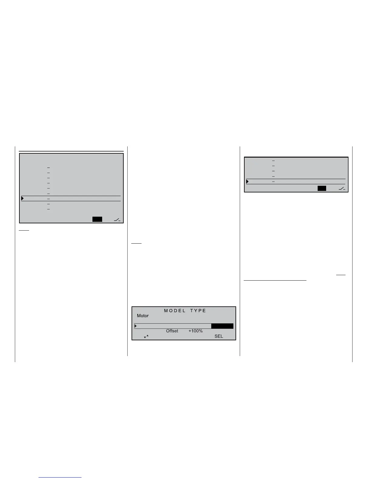 lerons / fl aps” line of the »Model type« menu, …