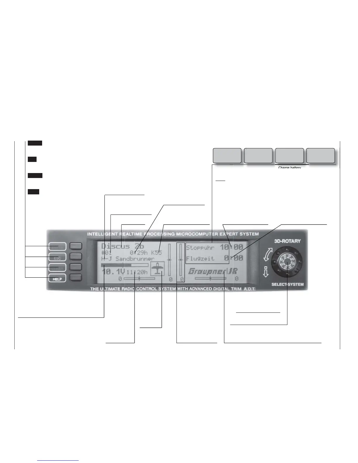 GRAUPNER logo; alternatively fl ight phase name,