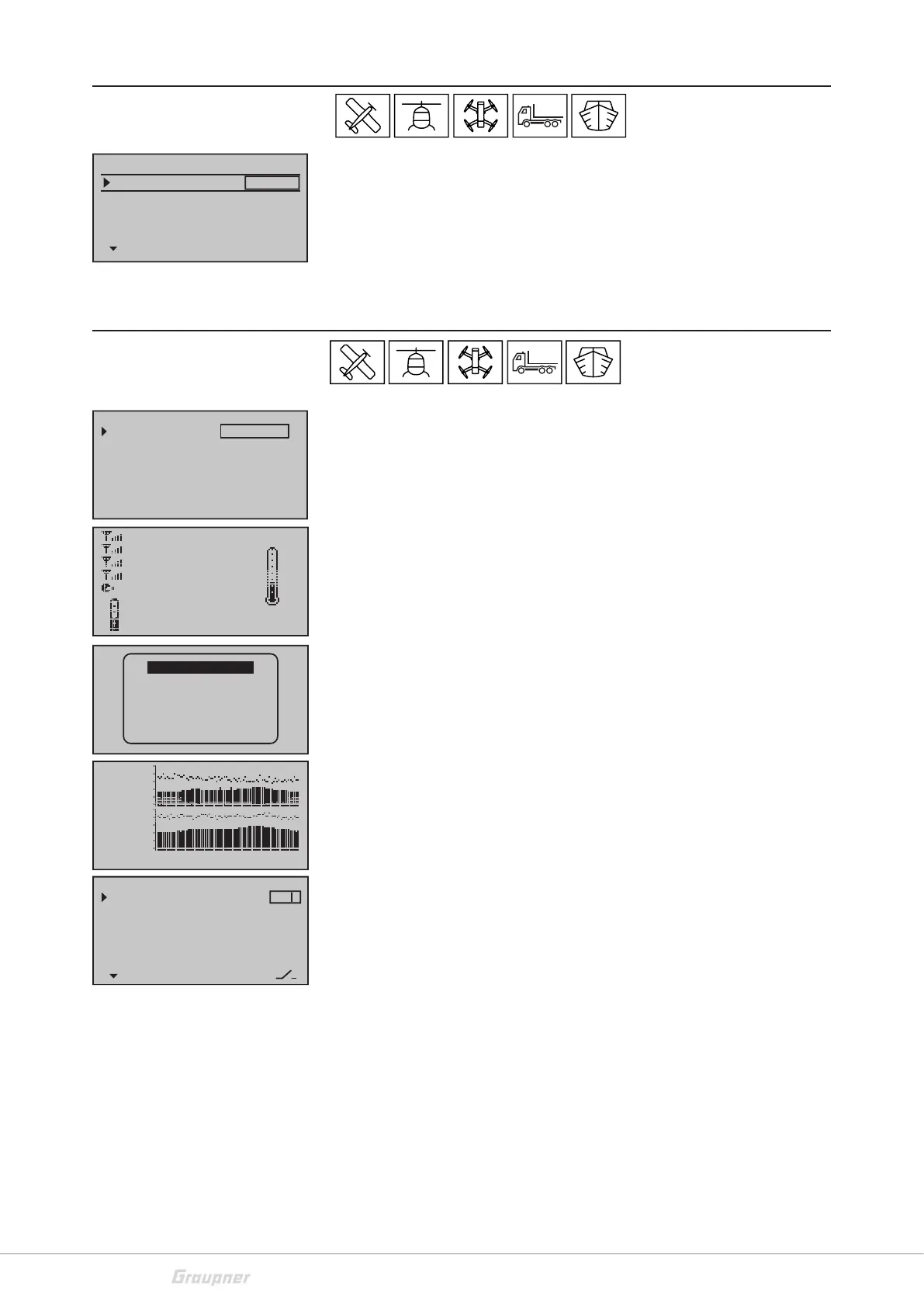 menus for settings of the receiver or the sensors connected. Select