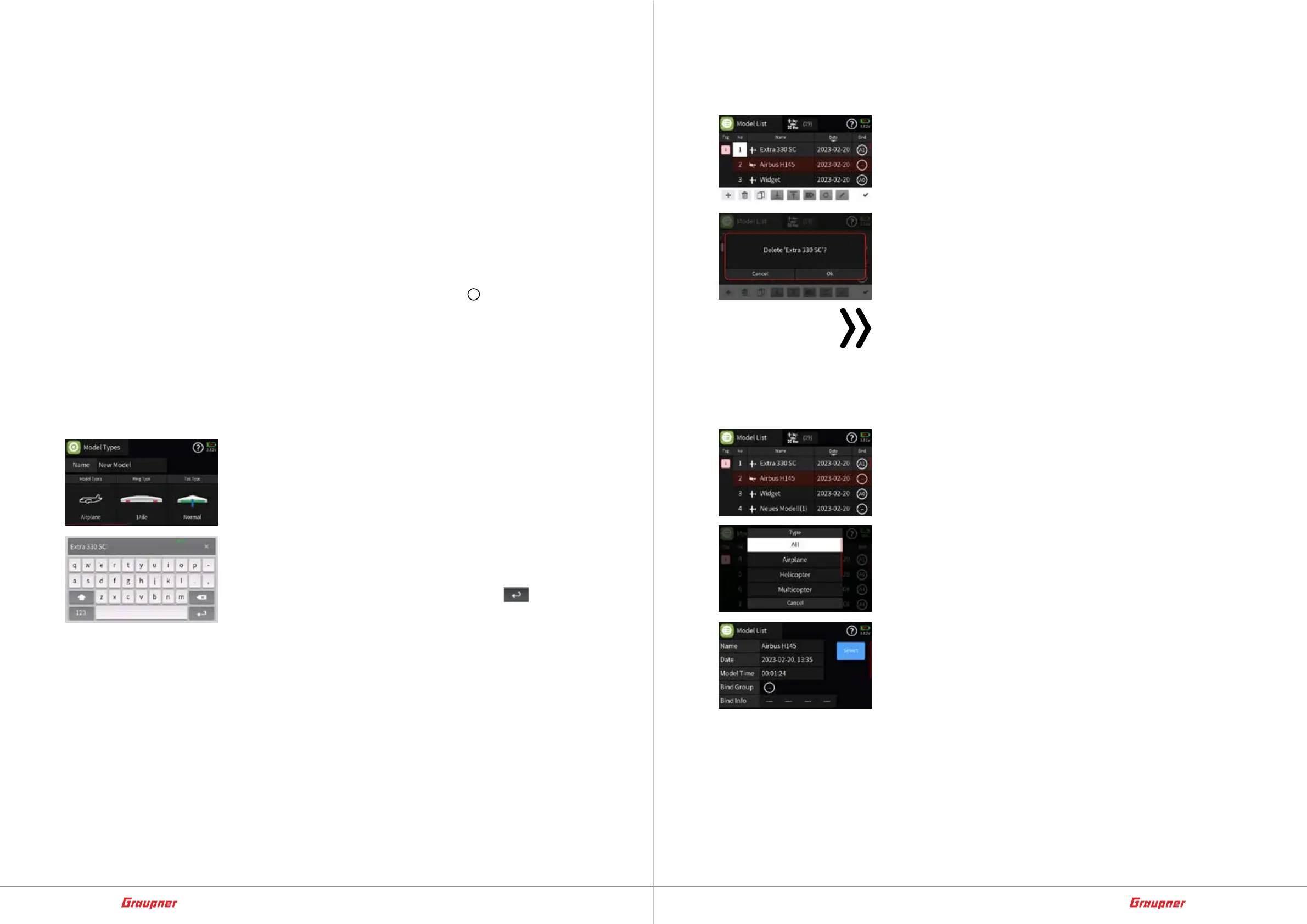 2. Touch the „Model list“ field at the top left.