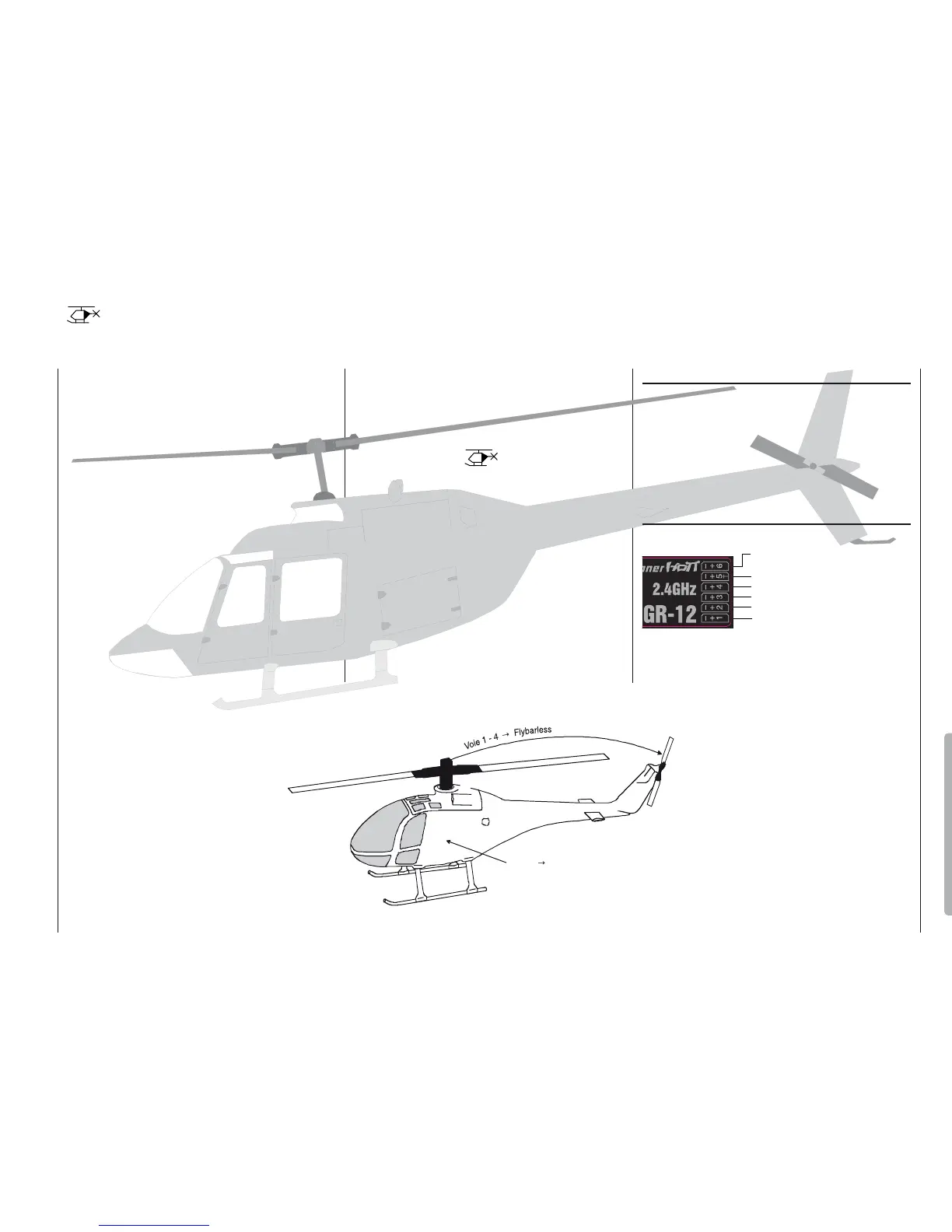 hélicoptères équipés d‘un système „Flybarless“, par ex.