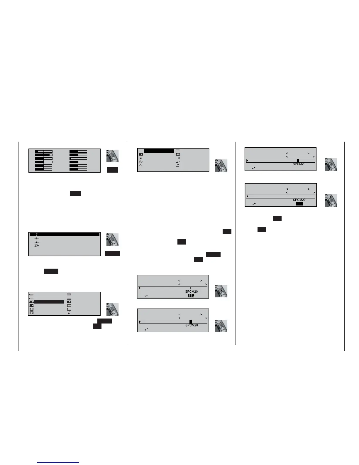 Hotkeys for: servo display, model select, multi-function list, quick-select and slot time; using the rotary control for menu settings
