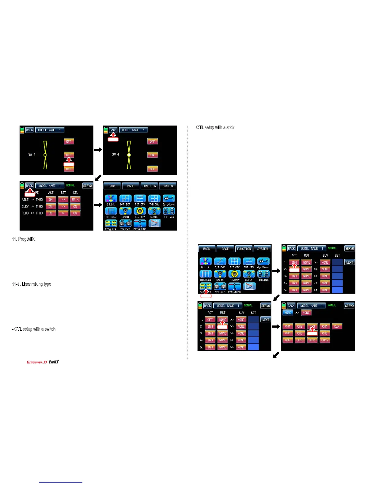 to “DUAL” then Prog.MIX function is on or off at the both end of stick operation range. Touch