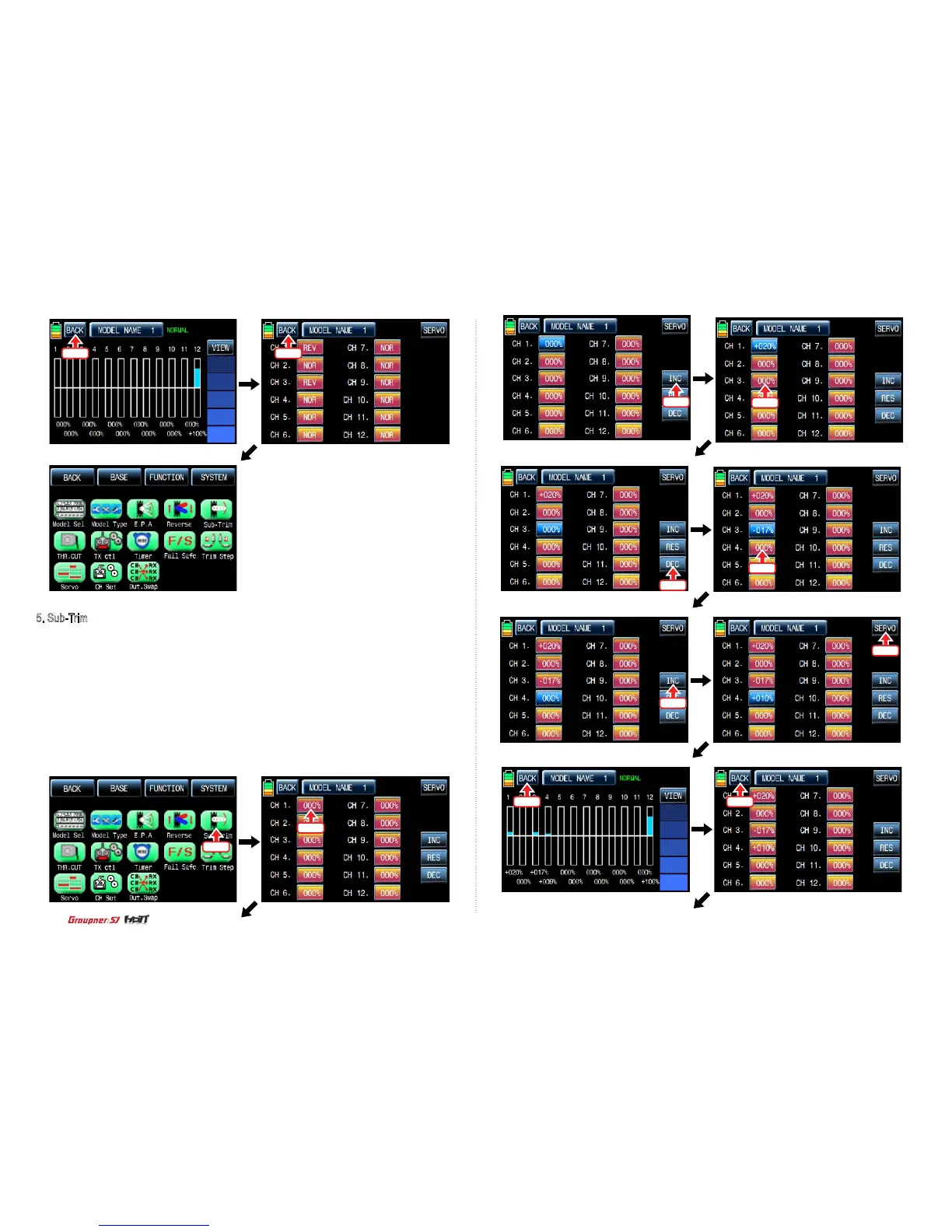 icon again to call “Base” menu page after setting “Sub-Trim” for every channel.