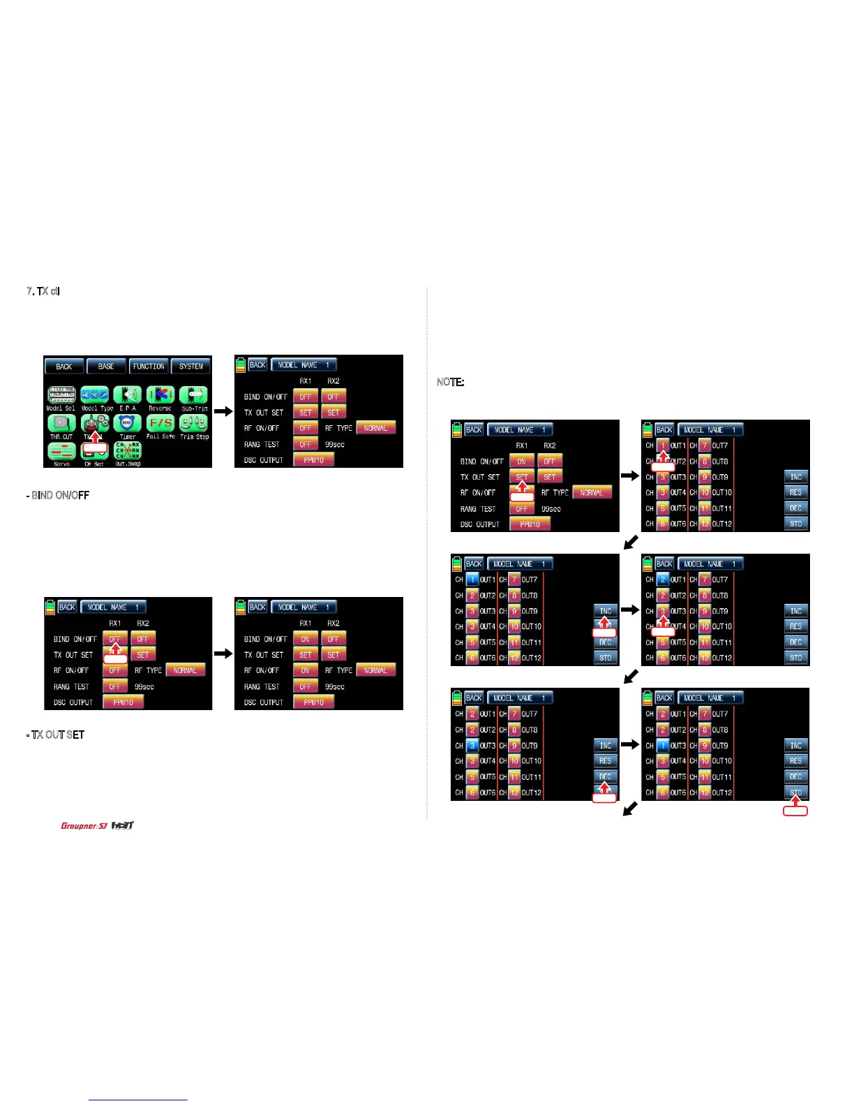binding mode. If you touch “Off” icon in “BIND ON/OFF” of “RX1” then the transmitter is bound